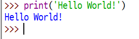 컴퓨터에게 문자열('Hello World!' 가 문자열이다. 나중에 알아볼거니 일단 알고만있자)을 출력하라고 시키는데는 print라는 명령어를 사용해야 하지만 IDLE에서 간단한 수식 정도는 알아서 이해하고 계산결과를 출력해준다.