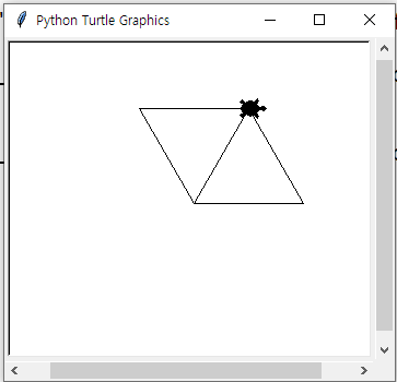 이 세 명령어는 말그대로 forward(100픽셀만큼)는 전진한다. left(120도), right(120도만큼)는 회전한다는 의미이다.
