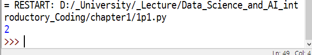 아까 인터프리에서는 '2' 라고 출력이되었지만